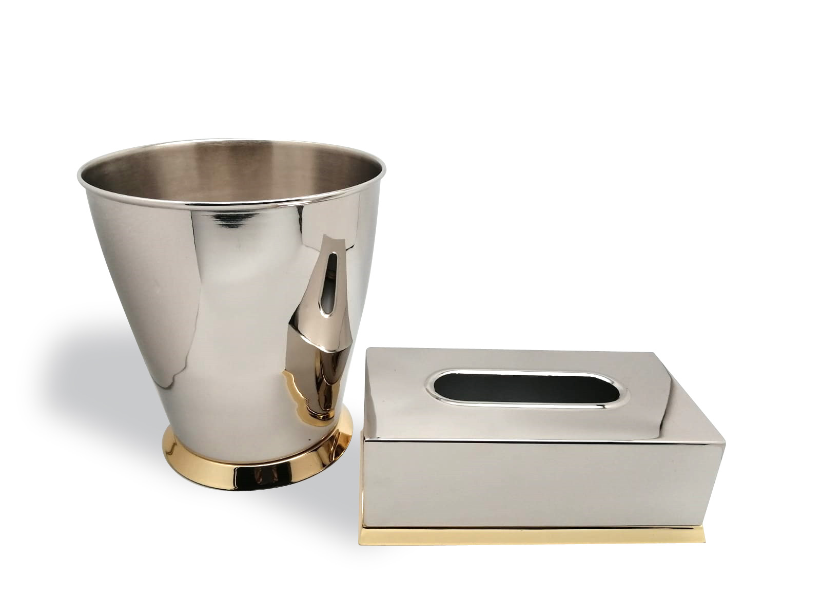 Be the first to review “Dustbin and tissue box silver color with gold line”